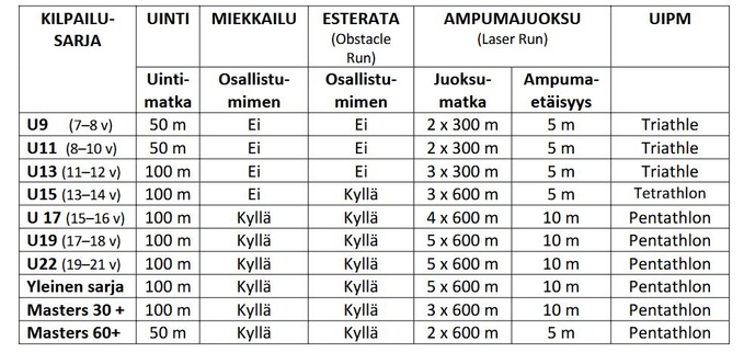 ILMOITTAUDU VIIDEN LAJIN SEIKKAILULEIRILLE (8–12 v). Lähde rohkeasti mukaan monipuoliselle seikkailuleirille, missä liikunnan ja leikkien kautta sinulla on mahdollisuus tutustua myös nykyaikaisen 5-ottelun lajeihin käytännössä. Leiripäivät ovat kaikki kuuden (6) tunnin pituisia (klo 9–15). Päiväohjelma on luotu hyvin monipuoliseksi, missä puolet liikuntaosuuksista muodostuu nykyaikaisien 5-ottelun lajeista, toinen puoli lasten itse valitsemista leikeistä/peleistä.