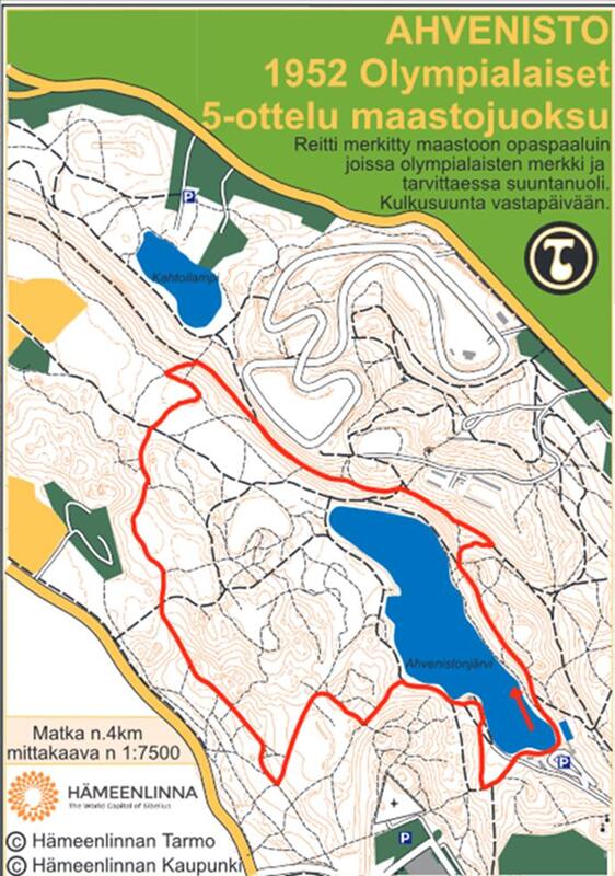 Hämeenlinnan 5-ottelijat järjestävät Olympialaisten historiaa kävellen -tapahtuman sunnuntaina 25.8 klo 10 Ahvenistolla. "Kävellään vuoden 1952 olympialaisten nykyaikaisen 5-ottelun virallinen maastojuoksureitti (noin 4 km), jonka aikana opas kertoo Hämeenlinnan olympialaisten historiasta ja lajin nykysuuntauksista; osallistujat saavat maastokartan (ks. viereinen kuva), johon on piirretty olympia-aikainen juoksureitti näkyviin." Kävelykierros on tarkoitettu normaalikuntoisille. Lähtö tapahtuu maauimalan portailta. VAPAA PÄÄSY. Lisätietoa: info@hml5.fi, puh. 0503406123. Hämeenlinnan 5-ottelijat yhteistyössä Hämeenlinnan Tarmon kanssa.
