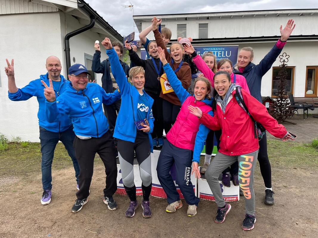 HÄMEENLINNAN 5-OTTELIJOILLE 10 MITALIA SM-KISOISSA 28.5.2022 Lauantaina Salossa järjestetyt nykyaikaisen viisiottelun Suomen mestaruuskilpailut olivat Hämeenlinnan viisiottelijoiden hieno voimannäyte. Kahdentoista kilpailutunnin jälkeen seuran urheilijoilla oli tuomisinaan kotiin 10 mitalia. Hämeenlinnasta lähti Saloon kilpailemaan 12 viisiottelijaa. Yleisessä aikuisten sarjassa oli yksi mies ja nainen. Yli 30-vuotiaita masters-sarjalaisia oli kaikkiaan kolme. Hämeenlinnan viisiottelijoiden viisiottelukerholaisista mukana oli viisi tyttöä ja kaksi poikaa juniorisarjoissa U11, U13 ja U15. NUORIMPIEN HUIKEA LÄPIMURTO Heti ensimmäisessä lajissa - uinnissa - näkyi, että harjoittelu oli tuottanut tulosta. Kaikki hämeenlinnalaiset tekivät omat henkilökohtaiset ennätyksensä. Seitsemälle nuorimmalle kilpailu oli ensimmäinen seuran omia kilpailuja suurempi tapahtuma. Nämä nuorimmat ottelevat vasta triathlessa, suomalaisittain kolmiottelussa, johon ei vielä kuulu miekkailua ja ratsastusta. Juniorit puhdistivat tehokkaasti mitalipöytää. Kaikki seitsemän ylsivät palkinnoille. Neljästä kultamitalista kolme tuli Hämeenlinnaan. Palkintojenjaossa kuului hyväntuulisten hämeenlinnalaisnuorten joukosta hyväksyvä toteamus: “Helsinkiinkin meni sentään yksi voitto”. Koska sarjaan U19 oli ilmoittautunut vain yksi kilpailija, Eetu Nurmi Hämeenlinnasta, hänet laitettiin kilpailemaan yleisen sarjan aikuisten miesten kanssa. Eetu hoiti ensimmäiset SM-kisansa erinomaisesti; tuloksena oli hopeamitali moninkertaisen Suomen mestarin Tiitus Ämmälän jälkeen. Naisten Suomen mestaruuden vei sarjaansa suvereenisti vuosikaudet hallinnut Helsingin viisiottelijoiden Laura Salminen. Hämeenlinnan Emmy Hämäläinen oli ollut mitaleilla kahdella miekkailun onnistuneella lisäpistolla tai esteratsastuksen ainoaa puomin pudotusta. Nyt oli tuloksena neljäs tila. Masters-sarjoissa otti Hämeenlinnan viisiottelijoiden puheenjohtaja Antti Simola miesten hopeaa ja Heidi Korpi naisten pronssia. Heinäkuussa Hämeenlinnan 5-ottelijat järjestävät Hämeenlinnan olympiaviisiottelun 70-vuotisjuhlakilpailuna kansainvälisen kutsukisan, Pentathlon Hämeenlinna 1952 Trophyn, 22.-23.7.2022. Hämeenlinnalaiset mitalistit nykyaikaisen viisiottelun SM-kisoissa 2022 Sarja Ottelija U11 Tytöt kultaa Karolina Leivonen U11 Tytöt pronssia Amelia Korhonen U13 Tytöt kultaa Iisa Kuusterä U13 Tytöt hopeaa Eda Yavuz U13 Pojat hopeaa Timo Söderberg U15 Yhdistetty tytöt/pojat kultaa Jasmin Rikkonen U15 Yhdistetty tytöt/pojat hopeaa Ohto Vestola Yleinen sarja Miehet hopeaa Eetu Nurmi Masters naiset pronssia Heidi Korpi Masters miehet hopeaa Antti Simola (Sulevi Pellinen HML5)
