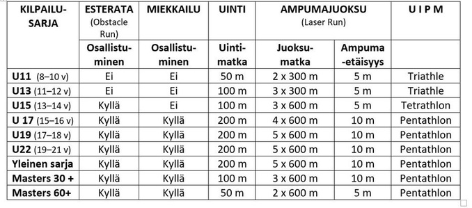 14.50–16.00 AMPUMAJUOKSU (Laser Run) Uimahallin piha-alue