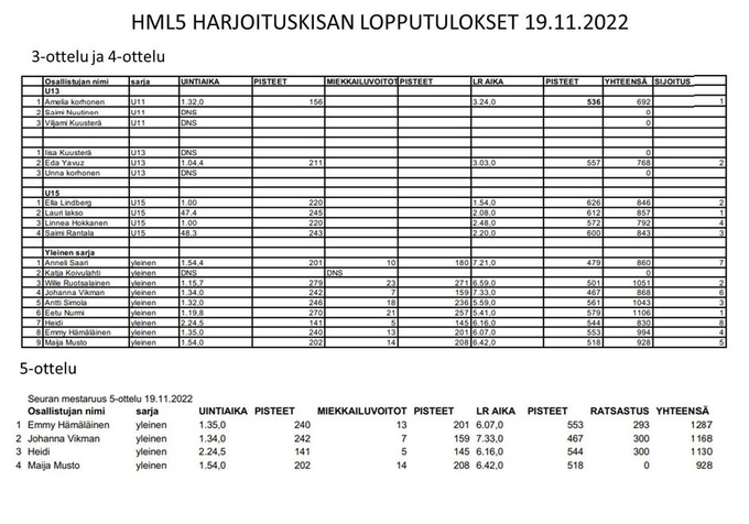 Seuran 5-ottelun harjoituskisa 19.11.2022