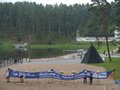 MM2022-kisojen banderollin mainospaikka Ahvenistolla maauimalan vierestä.