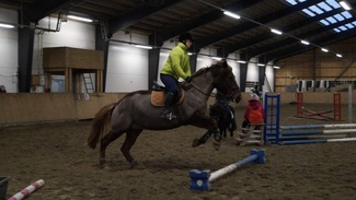 Esteiden yli kuitenkin tultiin (yksi kierrettiin ja uudella yrityksellä yli) enkä tippunut. Mutta niistä oivalluksista. Viime sunnuntaina harjoittelin koulua ja nimen omaan vakaata kättä. Käteni oli sidottu kyynärtaipeiden kohdalta yhteen selän taakse, jotta kädessä pysyy kulma ja hevosen kaulalla oli riimu, jota käsi on vakaa. Alla video (jos joku ihmettelee valmentajan sanaa "Piippu", niin kyseessä oli mielikuva, että minulla on haulikko selässä piippu ylöspäin ja keventäessä sen piippu liikkuu suoraan ylöspäin eikä etuviistoon;).